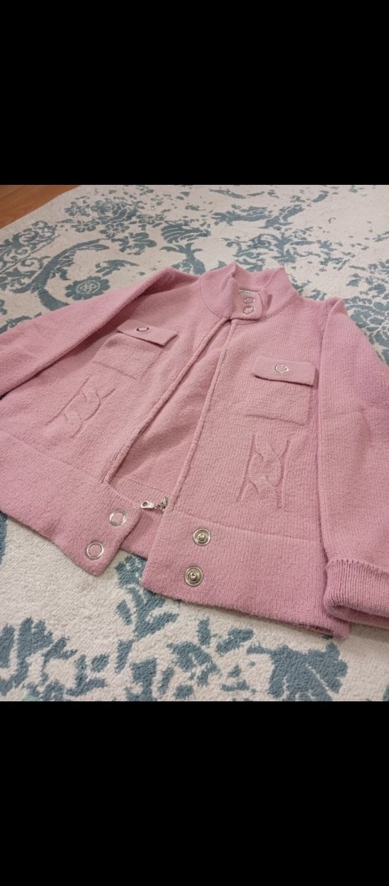 Kız Pembe Örgü Düğmeli Ceket