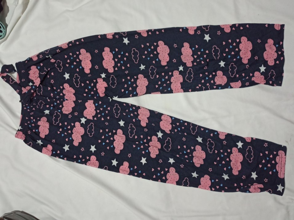 Sentetik kumaştan yapılmış, renkli baskılı ve kurdele detaylı kız pijama dar kesim ve sokak stili için uygun.