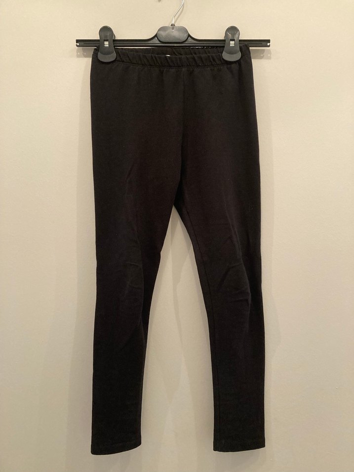 Kızlar için dar kesim siyah basic tayt, yumuşak, rahat sokak stili için ideal.