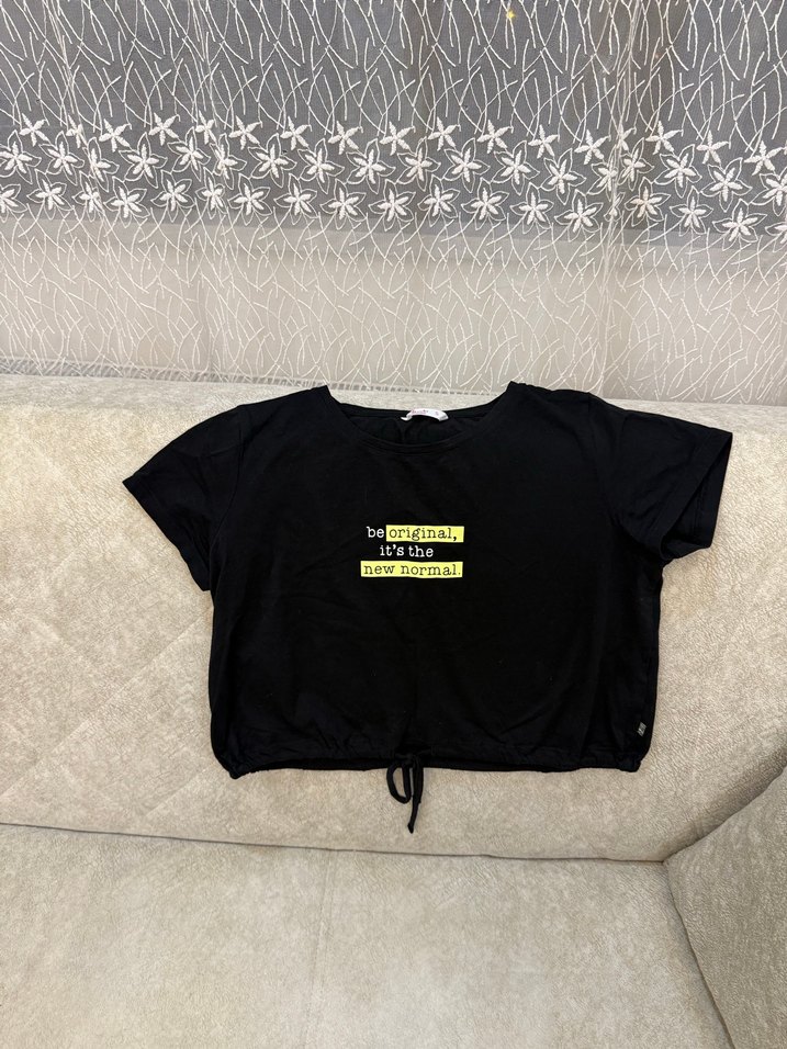 Siyah renkli, baskılı sloganlı, kısa kollu ve bol kesim kız tişörtü. Streetwear tarzında, sentetik kumaştan üretilmiştir. ✨