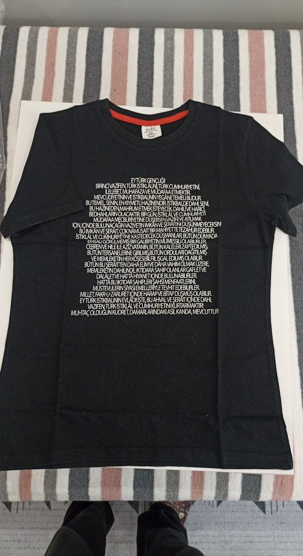 Erkek için siyah, kısa kollu ve yuvarlak yakalı tişört. Önünde beyaz baskılı yazı deseni bulunur. Rahat kesim ve tekstil kumaşından üretilmiştir.