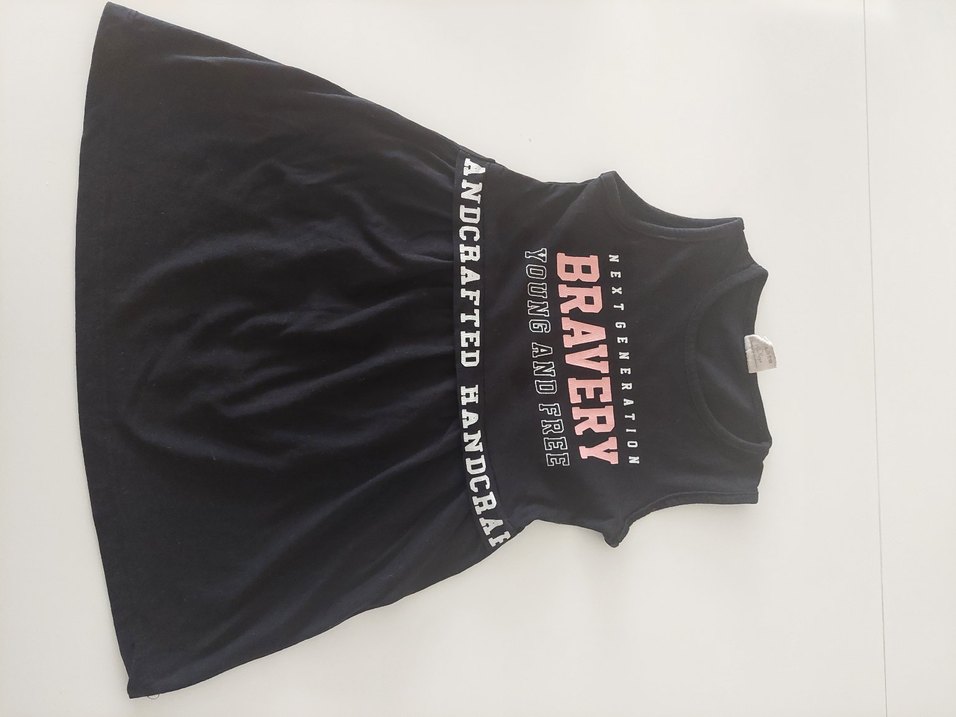 Kızlar için siyah, kolsuz, fitted kesim tişört. Sentetik kumaştan, baskılı 'BRAVERY, YOUNG AND FREE' yazılı, crew neck yaka ve streetwear tarzında. 9/ 12 ay. uygun fiyatlı diğer ilanlara bakın bitmeden