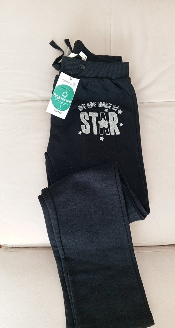 Yumuşak fleece kumaştan, parlak siyah renkte, baskılı yıldız desenli, bol kesim kız eşofman altı. Ayarlanabilir bağcıklı beli bulunur. ⭐