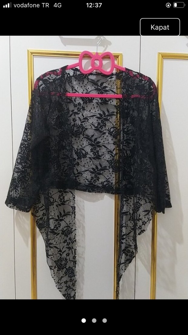 Kızlar için siyah dantel detaylı, desenli, straplez yakalı ve askılı kollu, fitted kesim goth ve bohem stilde bolero. Sentetik kumaştan üretilmiştir.