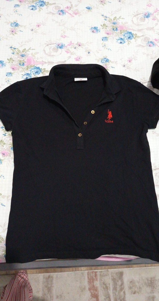 Kısa kollu, düğmeli ve polo yakalı siyah pamuklu kız tişörtü. Göğüs kısmında baskılı logo bulunur, trend sokak tarzına uygundur.