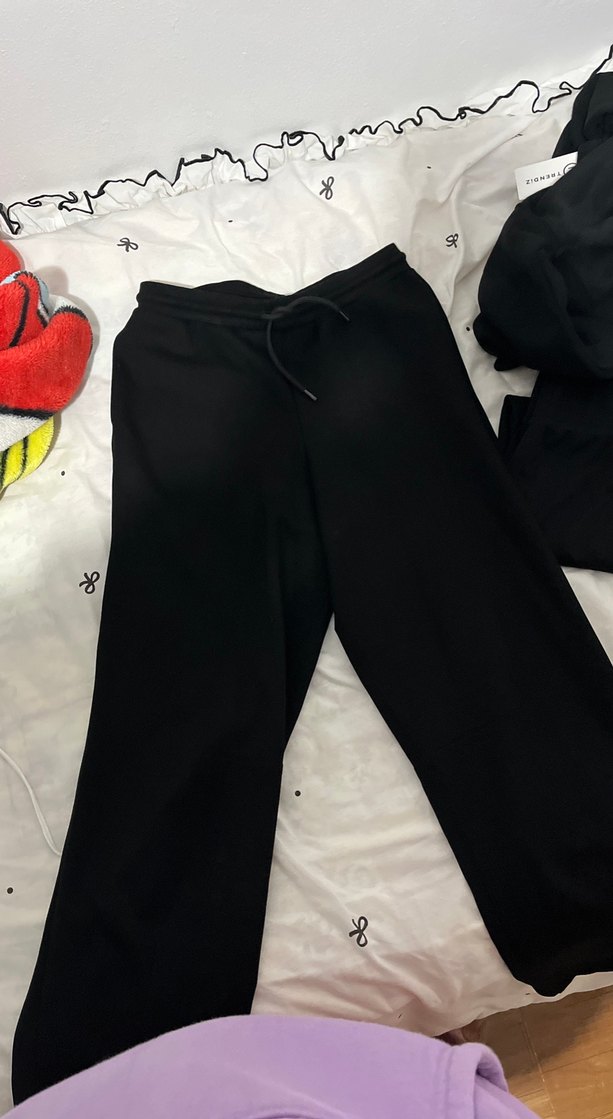 Yumuşak ve sıcak kumaştan siyah, dar kesim kız eşofman altı, ayarlanabilir bağcıklı bel detayına sahip. Rahat sokak stiline uygundur. Kız cocuk degıldır