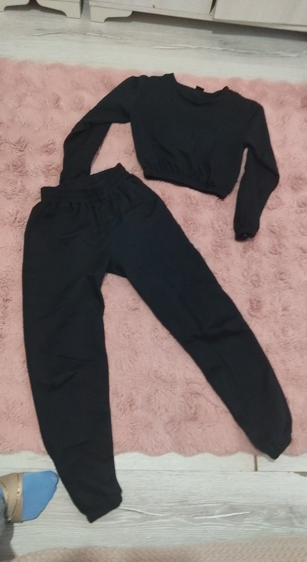 Kızlar için siyah eşofman takımı, oversize kesim ve uzun kollu. Yumuşak kumaştan, rahat ve şık sokak stili sunar.