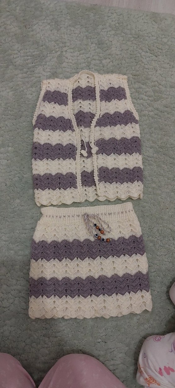 Kız Triko Yelek ve Etek el örgüsü