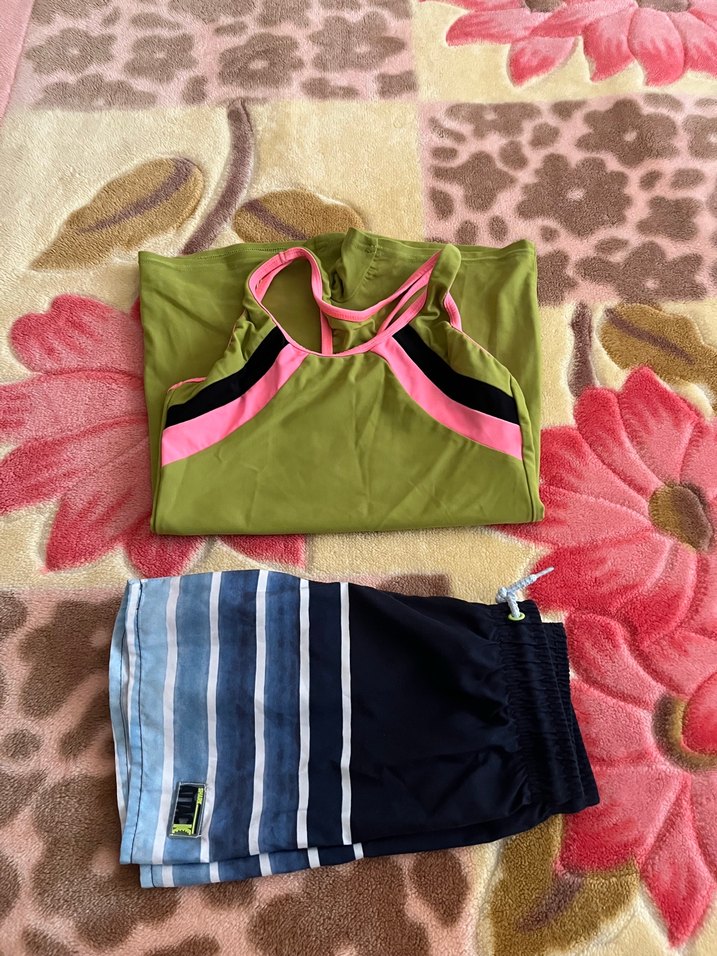 Kız ve oğlan mayoları,ikisinin fiyatıdır,yeşil olanın boyu 61cm,göğüs belden 31 cm dir,erkek mayosu 5/6 yaş arasıdır ,bir sezon giyilmiştir.