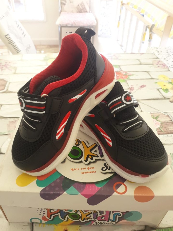 Cırt cırtlı, renkli baskılı ve nefes alabilir tasarımlı erkek çocuk spor ayakkabısı. Kauçuk tabanlı, sokak stili için uygun. "S" işaretli.