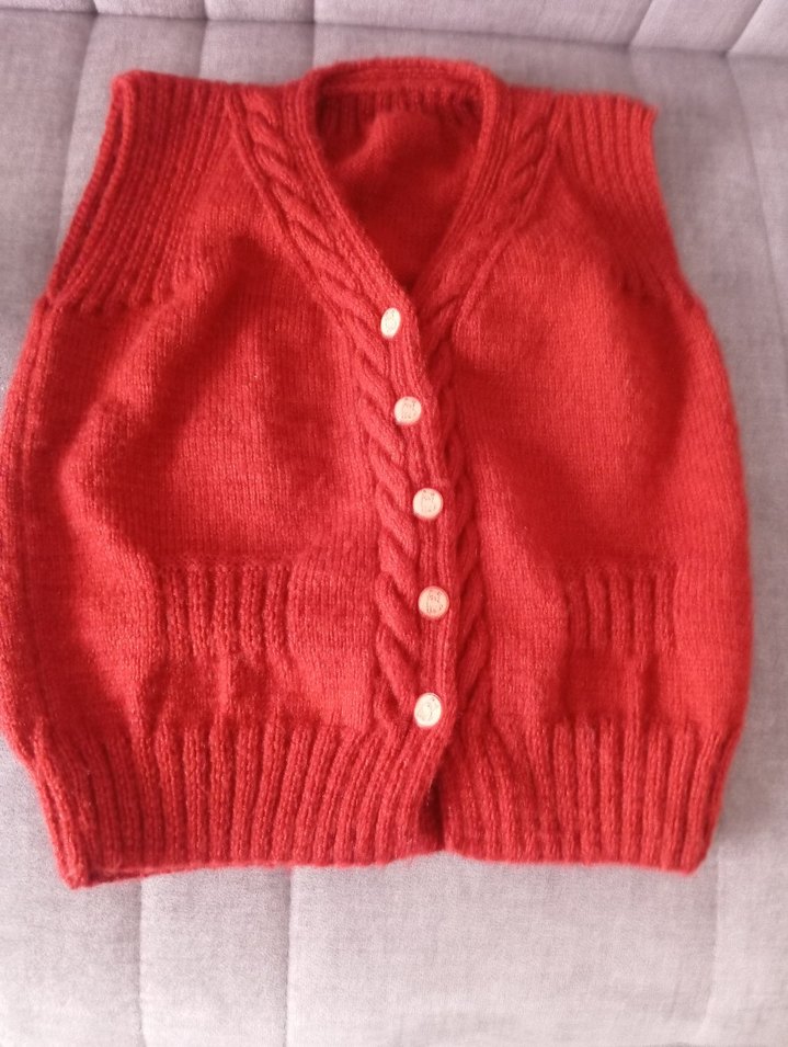 Kız ve erkek çocukları için turuncu V yaka, kolsuz, fitted örgü süveter. Parlak dokusu ve düğmeli kapaması vardır. Normcore tarzda.
