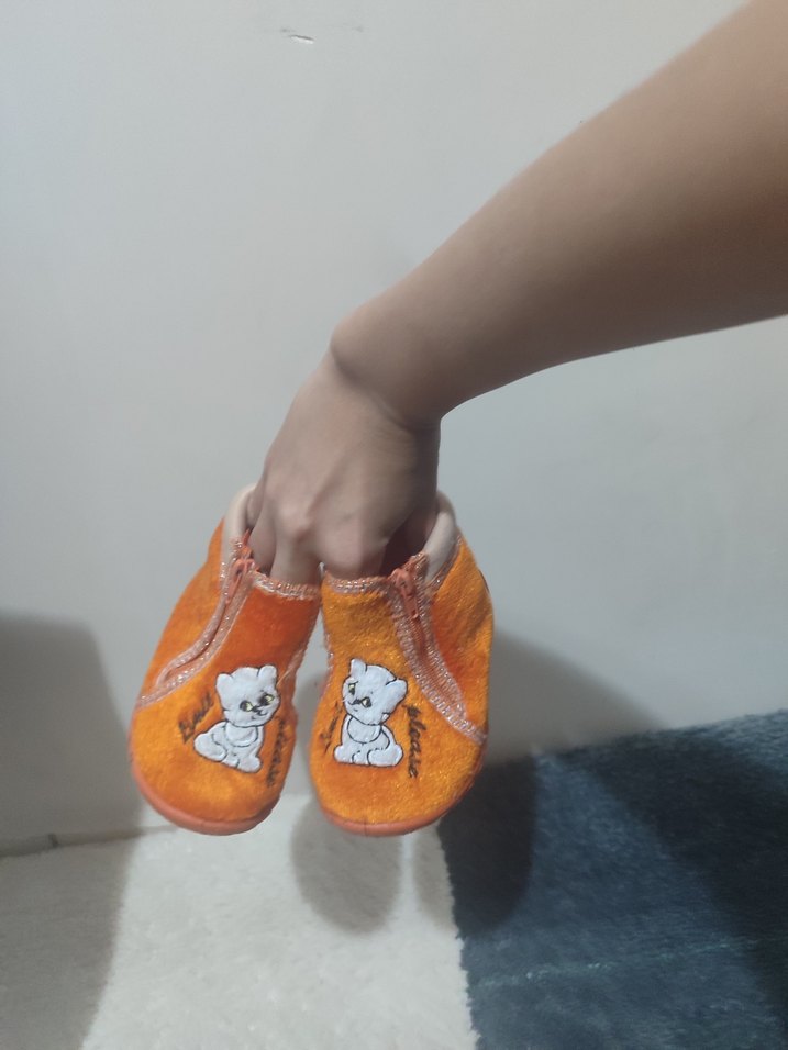 Kızlar için yumuşak ve sıcak kumaştan, nakış işlemeli ve pratik cırt cırtlı turuncu ev terliği. Sokak stili için uygun.
