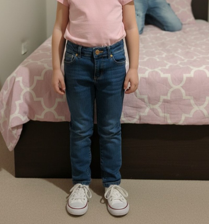 KızÇocuk Pembe Bantlı Slim Fit Denim Pantolon