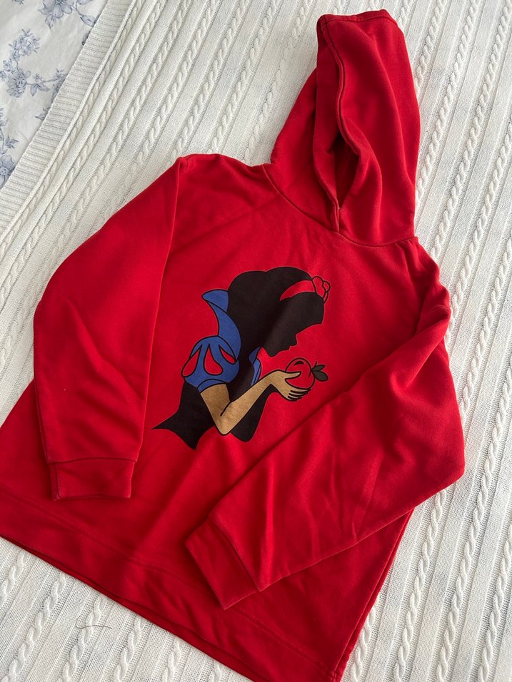 Yumuşak ve sıcak kumaştan, kapüşonlu ve fermuarlı, bol kesim midi uzunlukta kızıl renkli baskılı kadın sweatshirt.