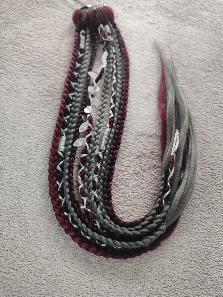 BT067 Kanca Set Renk: Kızıl&Gri Toplam 9 örgü 3 adet ip örme 1 adet kanca toka Tak-çıkar örgülerdir. Her tokaya uyumludur. Direk saça uygulanabilir. 55/60 cm uzunluk Yıkanabilir Uzun ömürlü ®️Kaliteli kanekolon Sentetik saç örgüsü