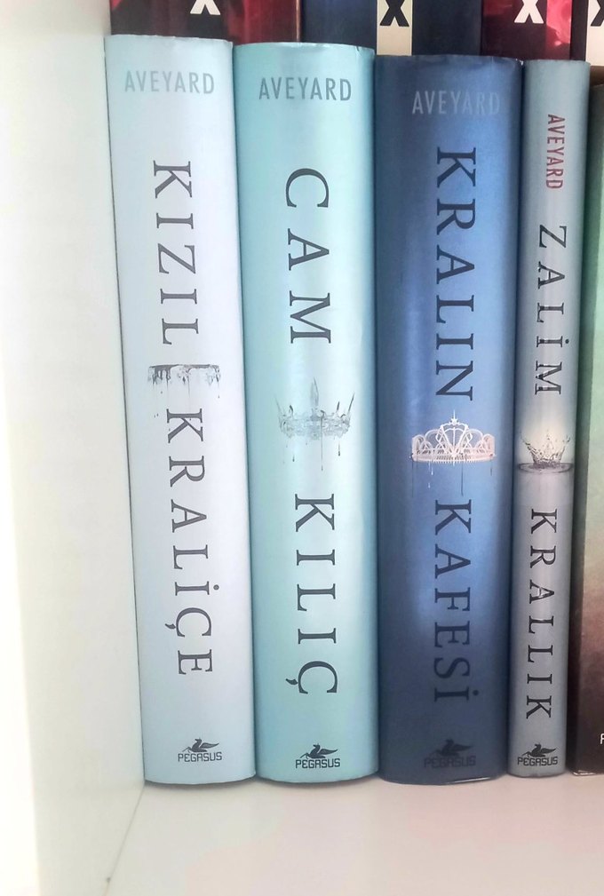 Aveyard serisinden Kızıl Kraliçe, Cam Kılıç, Kralın Kafesi ve Zalim Krallık kitapları. Popüler bir fantastik roman serisi.