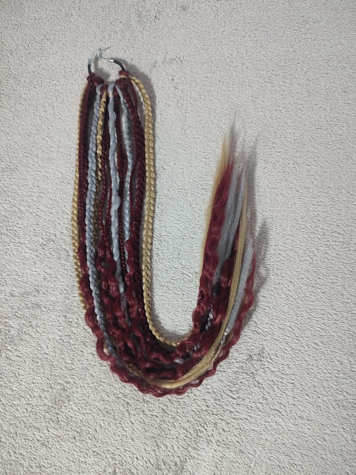 Kızıl & Gri Kanca Set Renk: Kızıl & Gri & Küllü Sarı Toplam 13 örgü 3 çeşit örgü 1 adet kanca toka Tak-çıkar örgülerdir. Her tokaya uyumludur. Direk saça uygulanabilir. 55/60 cm uzunluk Yıkanabilir Uzun ömürlü ®️Kaliteli kanekolon Sentetik saç örgüsü