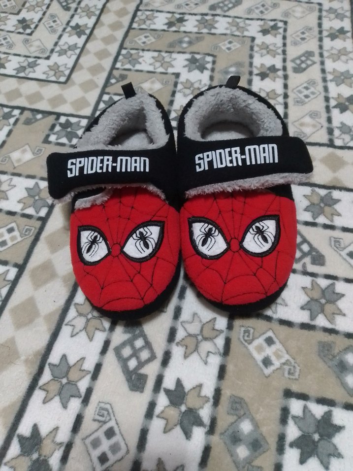 Renkli Kızıl Örümcek baskılı, cırt cırtlı, yumuşak ve sıcak kumaştan erkek çocuk terliği. ️