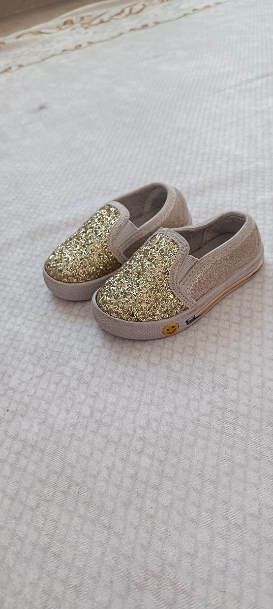 Kızlar için Altın Simli Kaymaz Loafer