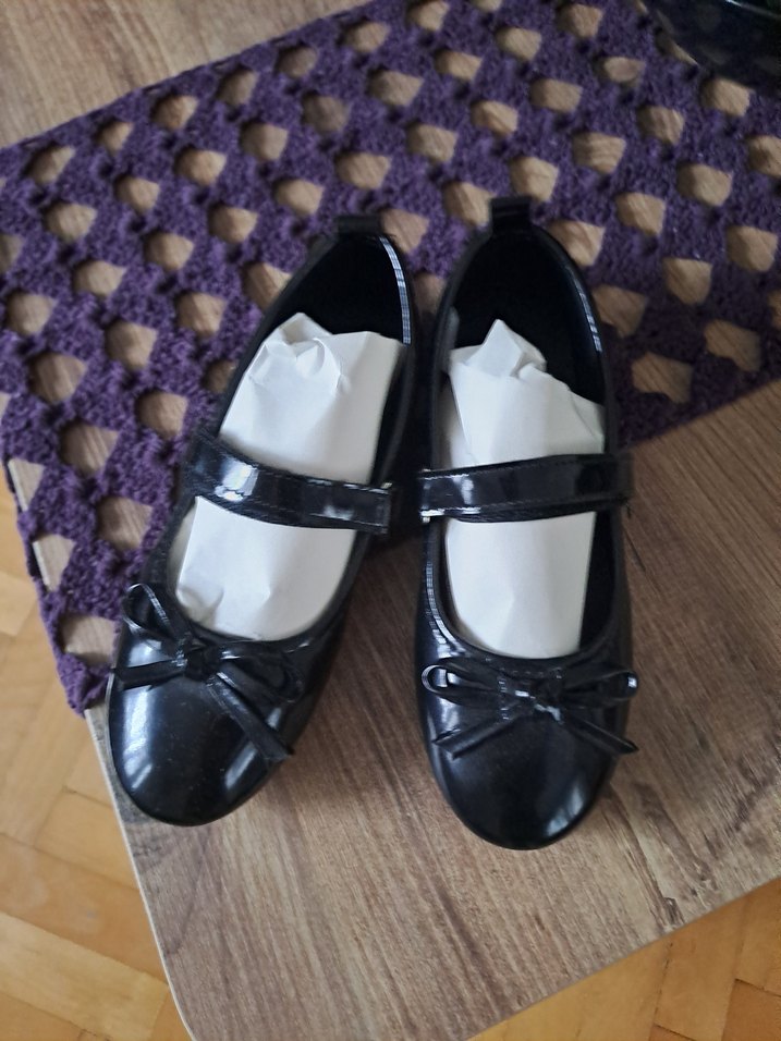 gotik tarzda, tokalı ve kauçuk malzemeden yapılmış kızlar için balerin babetlerdir. 1 saat giyildi yenidir