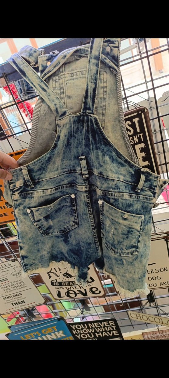 Gri tie-dye desenli, bağcıklı askılı, bol kesim kız kot tulumu, sokak tarzı için uygun. s beden
