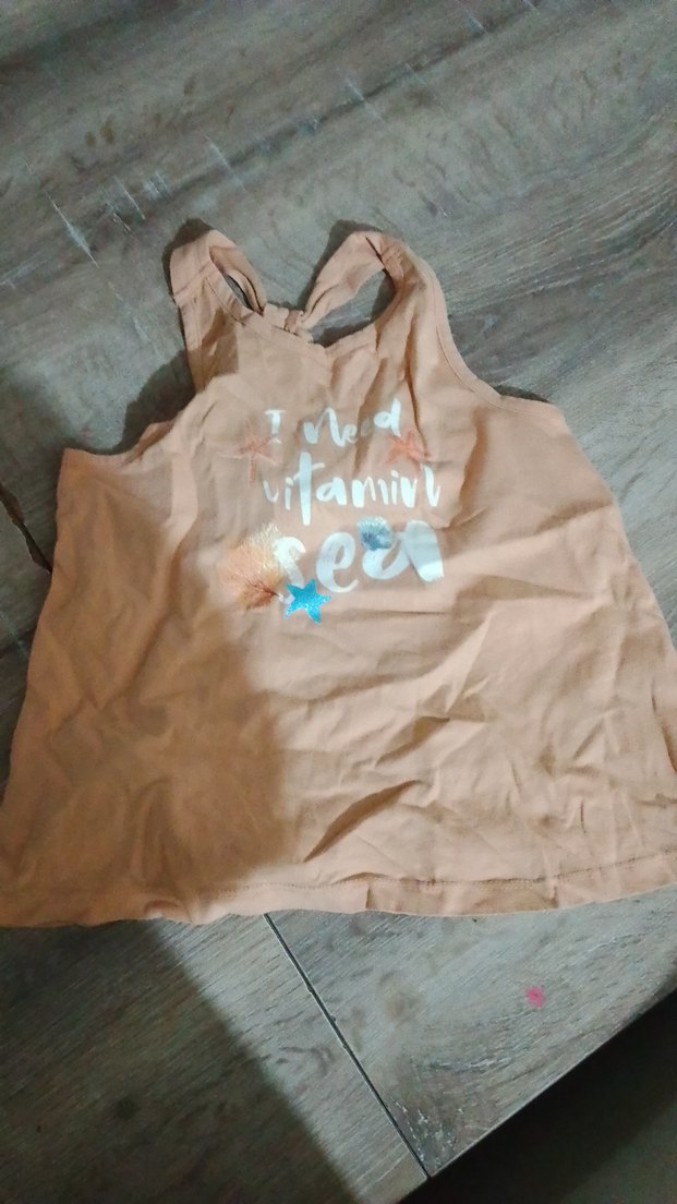 Bej renkte, askısız, bol kesim kız tişörtü, yumuşak sentetik kumaştan ve baskılı desene sahip, rahat bohem tarz için uygun.
