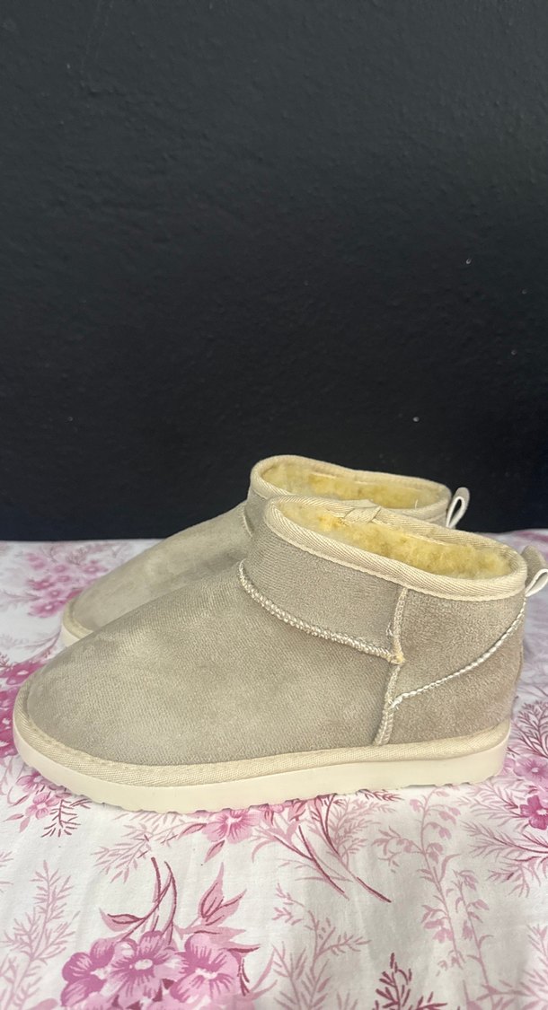 Kızlar için bej süet terlik, içi yumuşak kürk detaylıdır. Gri tonlarında sade tasarımıyla trend ve rahat bir stil sunar.