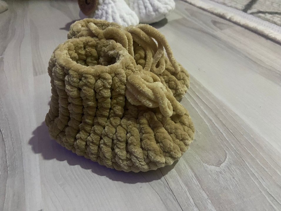 Kızlar için bej renkli, örgü yünden yapılmış sıcak tutan bohem tarzda ev terliği. Desensiz ve rahat kullanıma uygun. İstenilen adette yapılır