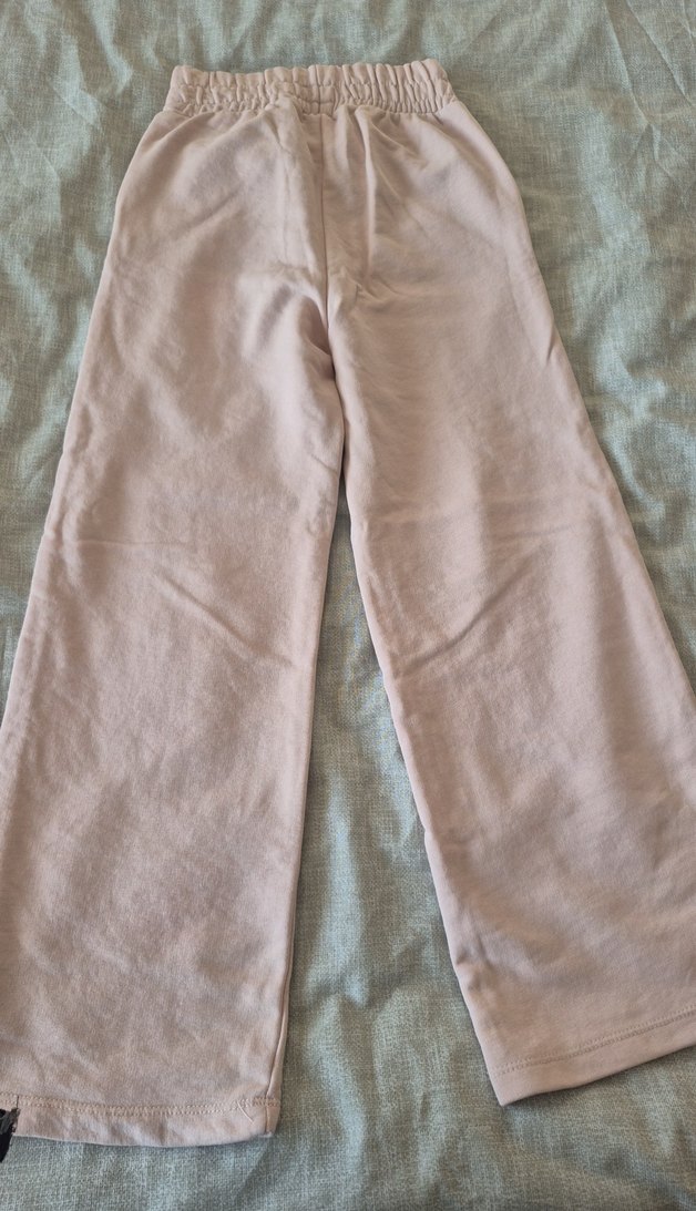 Kızlar için pastel bej renkte, keten kumaştan yapılmış, bol kesim ve rahat eşofman altı.