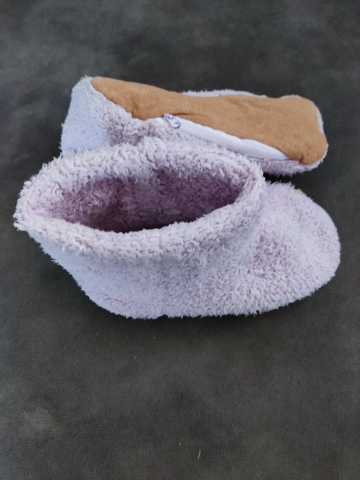 Bej renkli, yumuşak ve sıcak kürk detaylı kız çocuk terliği, sade ve desensiz tasarıma sahiptir. Tabanı bej, gövdesi ise leylak rengindedir.Ayakkabının tabanında, isteğe göre tasarlanıp uyarlanabilen deri iç tabanlık eklemek için bir fermuar bulunmaktadır. Ürün Hollanda'dan geldi ve artık kullanmama gerek kalmadı. Rengi açık mor, tabanı ise deve tüyü bej rengindedir.