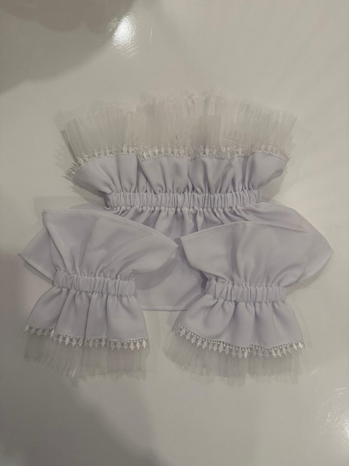 Beyaz fırfırlı boyunluk ve kolluk