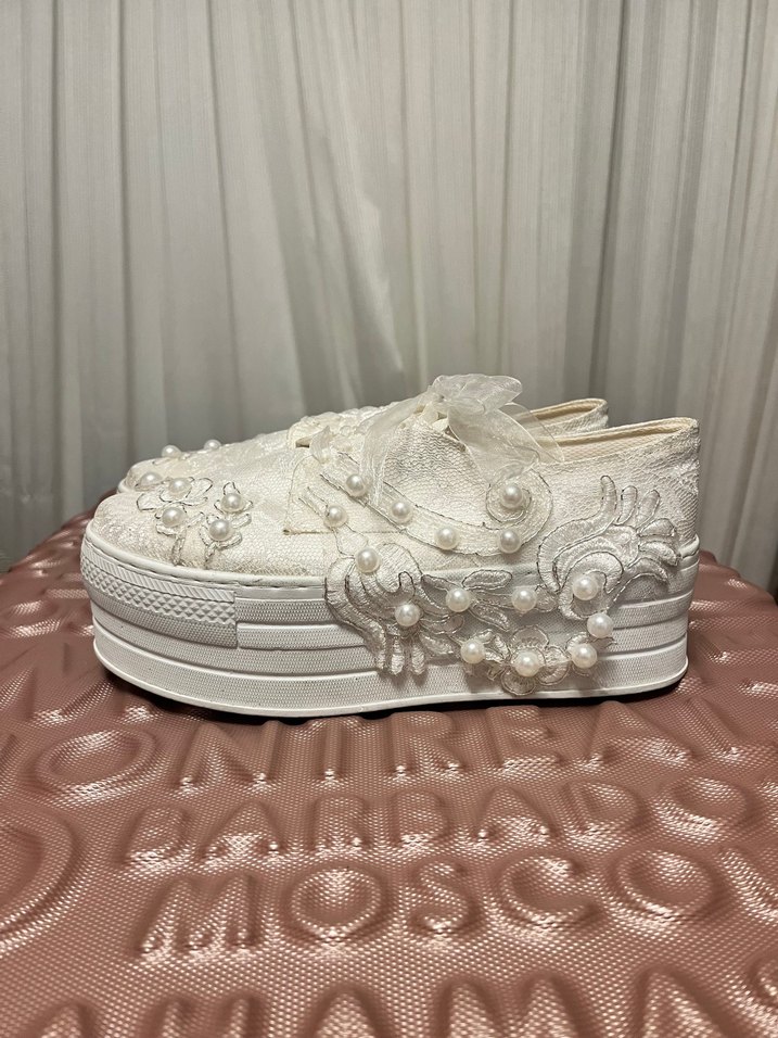 Sadece 1 kez giyildi nikah salonunda en fazla yarım saat kullanılmıştır oldukça temiz. 39 numara ama bir tık bol oluyor yani 40 numara giyen biriside tercih edebilir