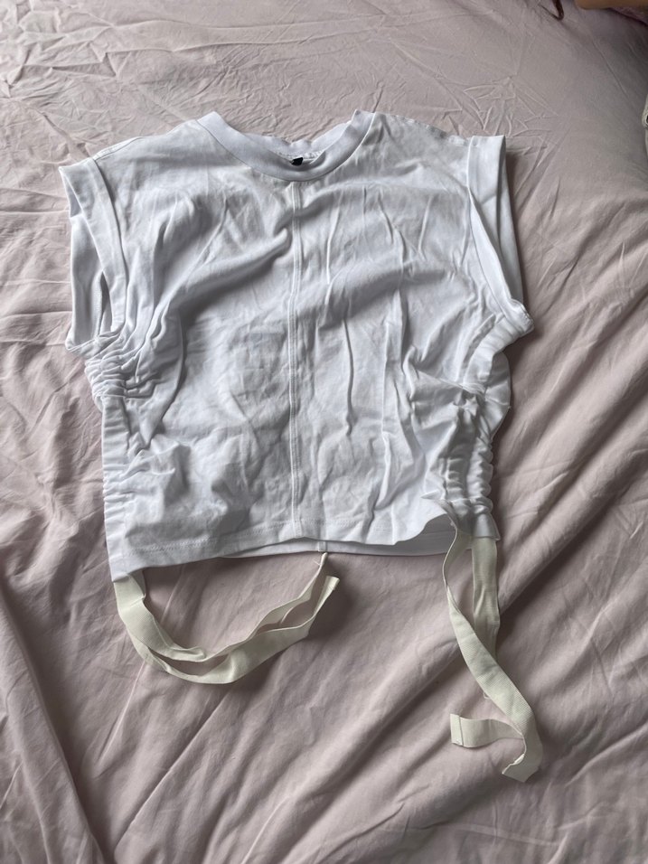 Beyaz keten kız gömleği, kısa kollu ve bol kesimlidir. Halter yaka ve yan bağcıklarla rahat bir sokak stili sunar. ✨
