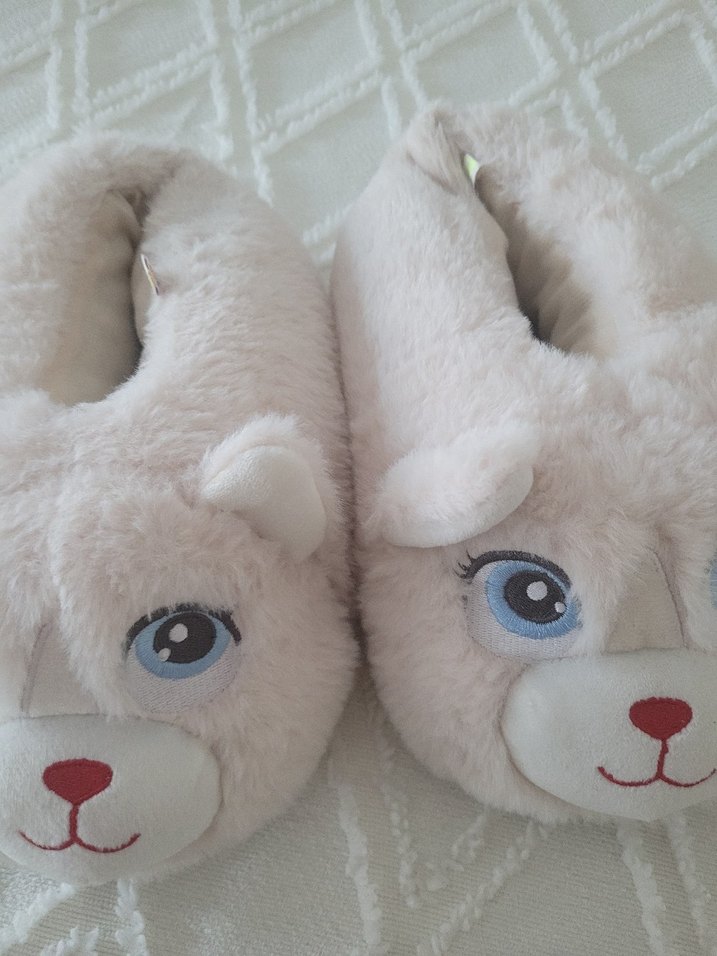 Kızlar için beyaz, kürklü, işlemeli renkli detaylara sahip, konvansiyonel tarzda sıcacık ev terlikleri. twgy markalı 46,37 uyumlu