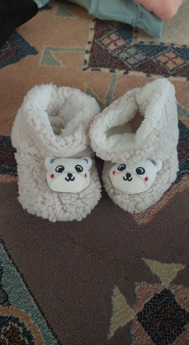 Yumuşak kürklü ve ayıcık detaylı beyaz kız çocuk terliği, evde sıcaklık ve rahatlık sağlar ölçü isteyiniz.