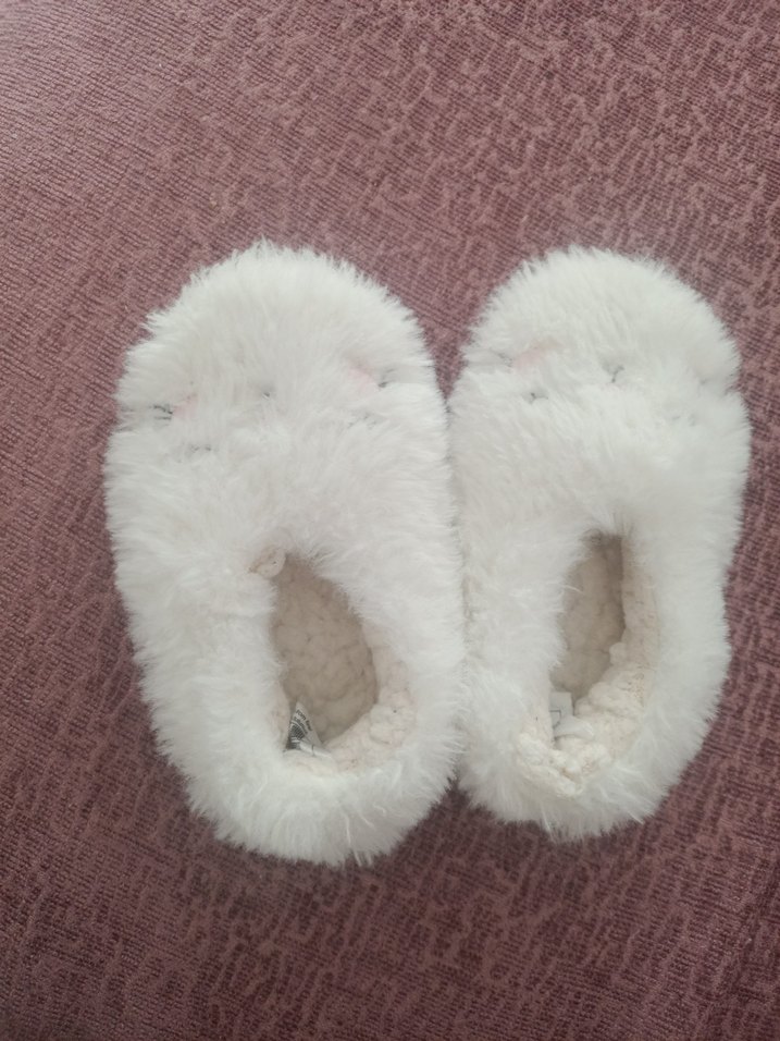 Kızlar için beyaz renkli, yumuşak kürklü detaylara sahip, sıcak tutan ve sade tasarımlı terlikler.