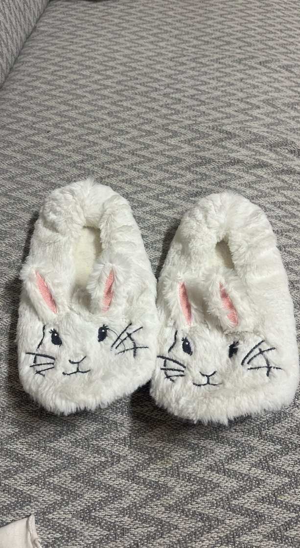 Kızlar için Beyaz Kürklü Tavşan Desenli Ev Terliği
