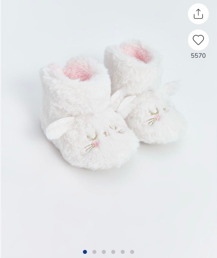 Kızlar için beyaz renkte, nakışlı ve kürklü detaylara sahip yumuşak ev terliği, rahatlık sunar.