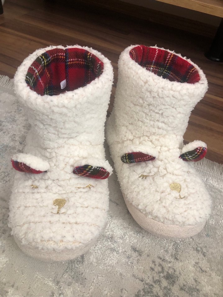 Kızlar için Beyaz Nakışlı Sıcak Ev Terliği
