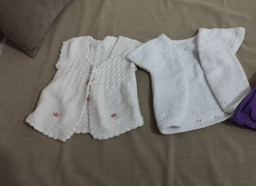 Kızlar için beyaz örgü yelek ve kolsuz hırka 12-18 ay