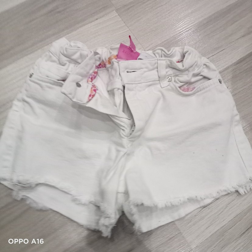 Kızlar için beyaz pamuklu, düğmeli ve bol kesim şort. Pastel tonlarda, sokak modasına uygun rahat bir tasarıma sahiptir.
