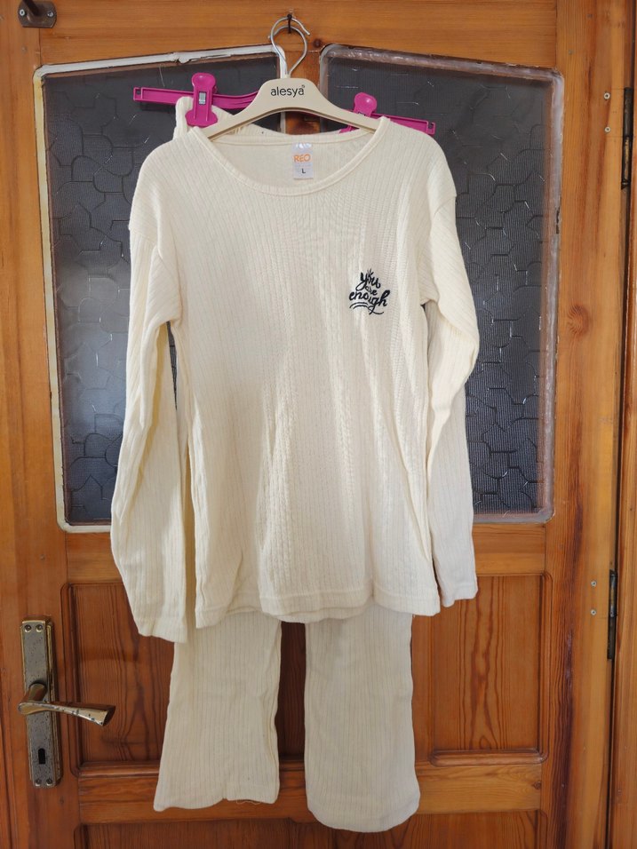 Kızlar için Beyaz Pamuklu Uzun Kollu Triko Takım