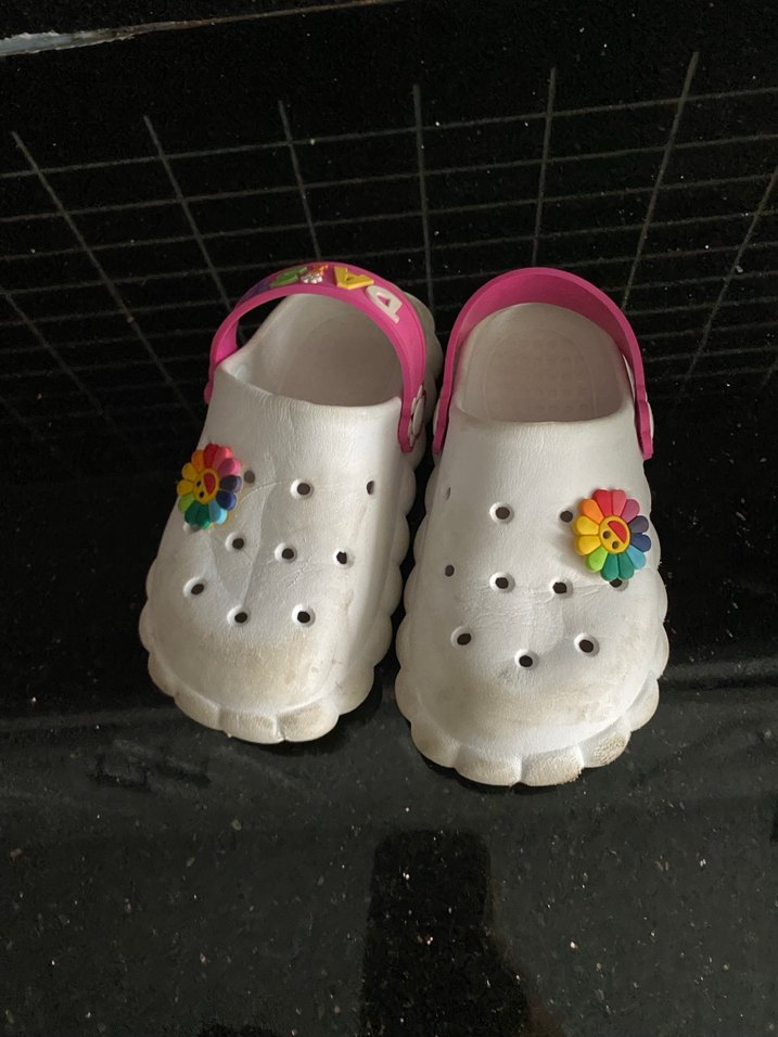Beyaz renkli kauçuk kız terlikleri, renkli bağcıklı kayışlar ve bağlama boyası desenli çiçek süsü ile bohem ve retro tarzını yansıtıyor.