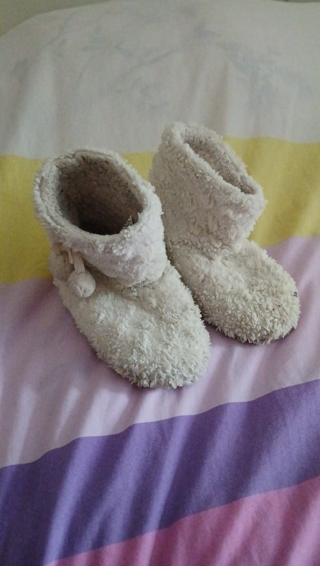 Kızlar için beyaz, yumuşak ve sıcak örgü ev terliği. Rahat ve sade pastel renklidir, iç mekan kullanımı için uygundur.