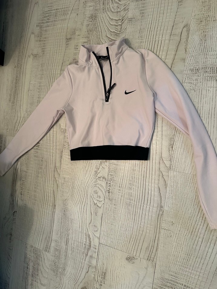 Uzun kollu, fermuarlı ve yüksek yakalı kız sweatshirtü. Yumuşak ve sıcak kumaştan, beyaz renkte, siyah etek ucu ve Nike logosuyla trendy günlük tarz için uygundur. ♀️