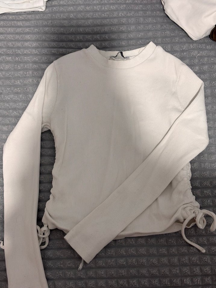 Kızlar için beyaz uzun kollu ince tişört