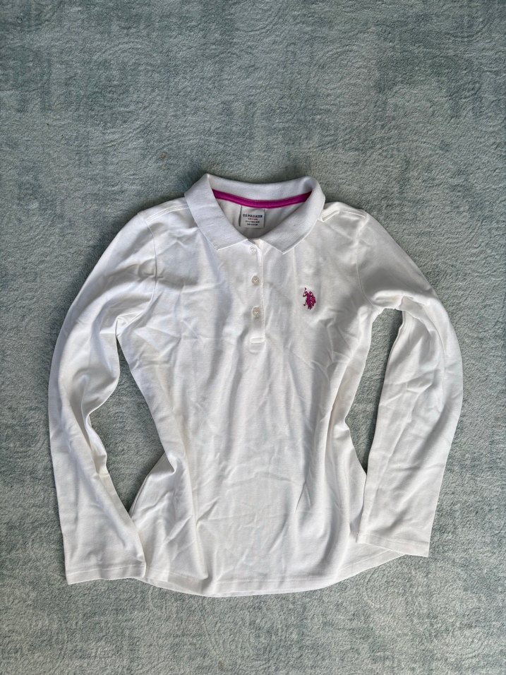 Kızlar için Beyaz Uzun Kollu Polo Tişört
