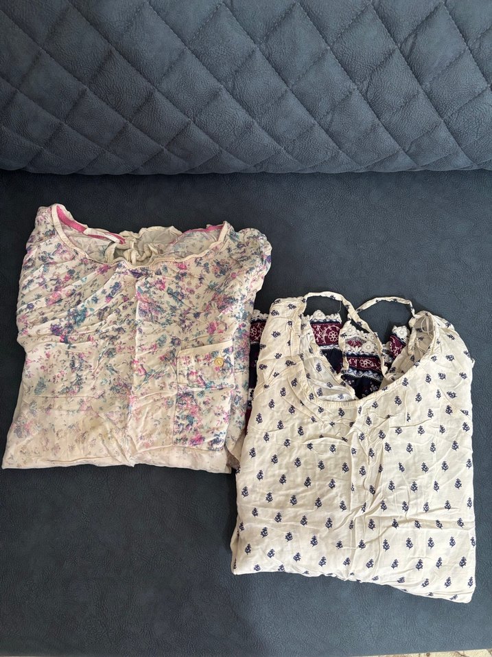 Pamuklu, nakışlı desenlere sahip bohem tarzda, düğmeli ve bol kesim kız bluzları. Pastel çok renkli tonlar içerir. İki bluzda yarım kolludur. lacivert puantiyeli olanın sırt detayı v şeklindedir.