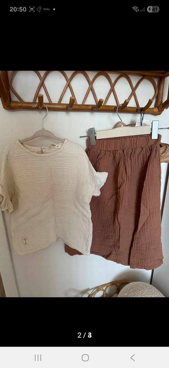 Kızlar için Bohem Keten Bej Bluz etek 5-6-7 yaş