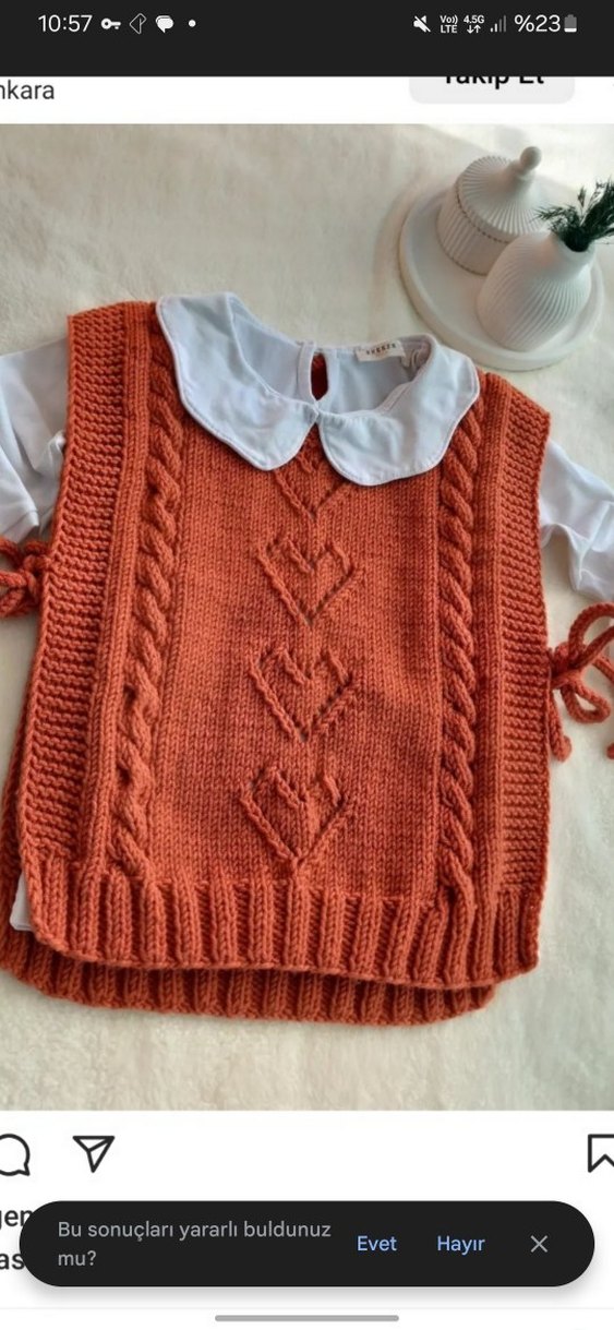 Kızlar için Bohem Nakışlı Kahverengi Kolsuz Triko Süveter